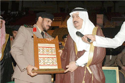 كرم صاحب السمو الملكي الأمير فيصل بن بندر بن عبد العزيز أمير منطقة القصيم شرطة المنطقة لقاء الجهود التى يبذلها أفراد وضباط المهمات والواجبات الخاصة خلال إقامة مهرجان صيف هذا العام. وقد تشرف بالسلام على سموه الكريم واستلام درع التكريم العميد عبد الله الزهراني مدير شرطة المنطقة، الذي قال بهذه المناسبة: التكريم الذي حظيت به شرطة المنطقة دليل واضح على حرص ولاة الأمر على الرقي برجال الأمن والخروج، وهو دافع لبذل المزيد من العطاء للوطن المعطاء.