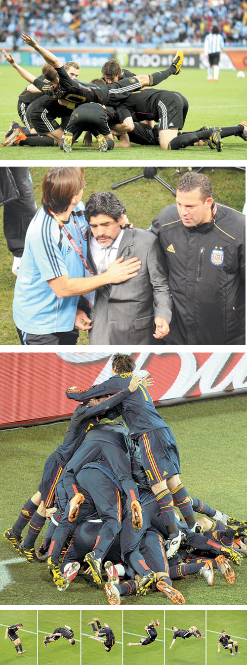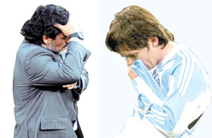 ألمح دييجو مارادونا بشدة إلى أنه سيتنحى عن تدريب فريق الأرجنتين القومي لكرة القدم عقب هزيمته أربعة مقابل لا شيء على يد ألمانيا في دور الثمانية لكأس العالم. وقال مارادونا الذي حصل على كأس العالم كلاعب عام 1986م: (يجب أن أناقش (هذا القرار) أولاً مع عائلتى واللاعبين.. سوف أصبح في عامي الخمسين في 30 أكتوبر،