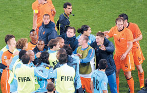 تسبب الهدف الثاني لهولندا في المباراة التي فاز فيها الفريق على أوروجواي 2-3 في الدور قبل النهائي لمونديال جنوب أفريقيا، في شكوى من جانب بعض أفراد الفريق اللاتيني على اعتبار تسلل المهاجم روبن فان بيرسي، بيد أن المدير الفني أوسكار واشنطن تاباريز ولاعبيه لم يعتبروا ذلك مبرراً للخسارة.