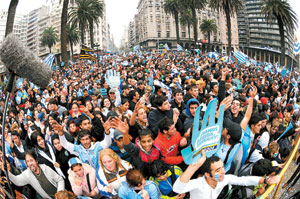 رغم هزيمتها 3-2 أمام المنتخب الهولندي في الدور قبل النهائي لبطولة كأس العالم 2010 بجنوب إفريقيا، انطلقت عشرات الآلاف من جماهير أوروجواي بشوارع العاصمة مونتيفيديو وبعض المدن الأخرى للاحتفال بالإنجاز الذي حققه منتخبها الوطني بمجرد تأهله إلى الدور قبل النهائي للنهائيات العالمية.