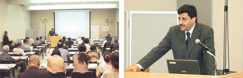 بدأت يوم أمس السبت في العاصمة اليابانية طوكيو فعاليات البرنامج العلمي ضمن مشاركة المملكة ضيف شرف في معرض طوكيو الدولي للكتاب 2010م بمحاضرة عن جائزة خادم الحرمين الشريفين الملك عبدالله بن عبدالعزيز للترجمة ألقاها الدكتور سعيد فايز السعيد رئيس اللجنة العلمية للجائزة وأكد في مطلعها أن تباشير يقظة شاملة أخذت تلوح في الأفق القريب مبشرةّ بميلاد نهضة علمية ومعرفية سوف تزيل ذلك القصور عن ثقافتنا فيما يتصل بالترجمة، وهذا ما سيتحقق من هذا المشروع الحضاري بدعم ورعاية خادم الحرمين الشريفين، وجزم السعيد بأن الجائزة سوف تسهم في النهوض بمشروع الترجمة وجعله عنواناً مرادفاً للتقارب والتعارف والاكتشاف والتواصل والتسامح ونقل العلم النافع والمفيد الذي هو أساس لبناء قدرة الإنسان ورفع مهاراته التنافسية لتأسيس نهضة علمية معرفية شاملة ومتجددة.