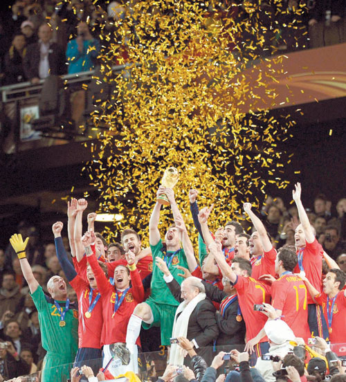 توج المنتخب الإسباني بطلاً لكأس العالم 2010 بعد فوزه مساء أمس على المنتخب الهولندي بهدف دون مقابل. |
