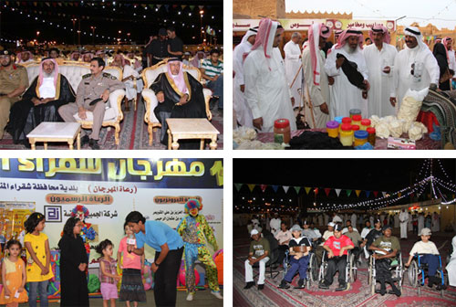 وكان المهندس محمد الزيد قد زار القرية الشعبية عصرا مع عدد من المسؤولين وأشرف على العمل فيها وتفقد أجنحتها وشاهد ماتقدمه الأسر المنتجة والمهن والأعمال اليدوية والمزرعة والسواني وقطار المهرجان من خلال مسيرة بدأت من البوابة وحتى بداية القرية كما شارك في هذه الجولة عدد من الضيوف. وسوف يستمر المهرجان لمدة 10 أيام وستكون القرية الشعبية مفتوحة للعائلات يوميا من بعد العصر وحتى آذان العشاء، ثم مهرجان الرجال على المسطحات الخضراء والنساء بكلية المجتمع وحتى منتصف الليل. بالإضافة إلى برامج الشباب (النصب وسباق السيارات وتحدي الرمال) وغيرها من البرامج الممتعة.