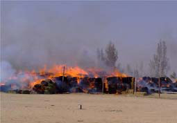 اشتعلت النار أمس بأكثر من 4 آلاف بالة برسيم وتبن وذلك في قرية النباج شرق طبرجل.