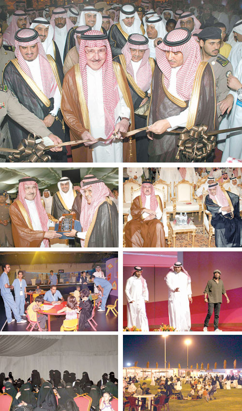 بعد ذلك قدم الأستاذ عبدالله عيسى العيسى مدير شئون أرامكو هدية تذكارية لسمو الأمير سطام، ثم تفضل سمو الأمير سطام بقص الشريط والإيذان بافتتاح المهرجان ثم جولة في المعرض.