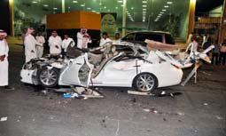توفي شاب في العقد الثالث من عمره بعد تعرضه لحادث مروري شنيع، فبينما كان يقود سيارته من نوع «افالون» فوجئ بشاحنة تعترض طريقه قاصدة الدخول إلى مستودع زراعي على طريق الملك عبدالعزيز شمال بريدة، وقد ارتطمت سيارة الشاب بالشاحنة ومرت من أسلفها لتخرج من الجانب الآخر، وقد تمكن الدفاع المدني من تخليص الشاب من سيارته المحطمة، لكنه كان في حالة حرجة، وقد نقله الهلال الأحمر إلى مستشفى الملك فهد التخصصي ببريدة حيث فارق الحياة هناك.وشهد الموقع تجمهراً كبيراً من المارة مما تسبب في إعاقة رجال الأمن عن أداء واجبهم العملي، وباشر الحادث مرور مدينة بريده والهلال الأحمر ودوريات الأمن.