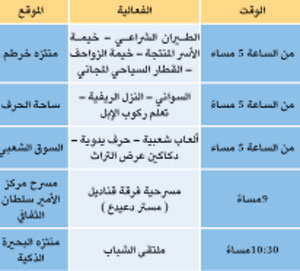 جدول فعاليات صيف المذنب ليوم الأربعاء 2-8-1431هـ