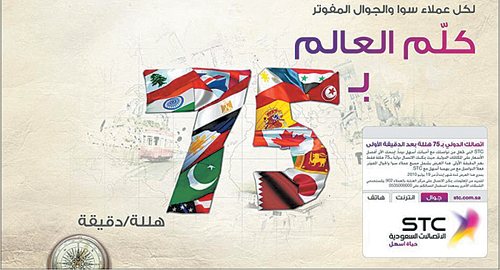 أطلقت شركة الاتصالات السعودية أقوى عروض المكالمات الدولية لعملاء الجوال والذي يتيح لعملائها إجراء المكالمات الدولية لجميع دول العالم عبر الجوال بتخفيضات كبرى بواقع 75 هللة فقط للدقيقة بعد الدقيقة الأولى وذلك انطلاقاً من حرص الشركة الدائم على تقديم أفضل الخدمات والعروض المتميزة التي تلبي رغبات مختلف شرائح عملائها وتحقق تطلعاتهم في الحصول على أرخص مكالمات دولية بالمملكة. وأوضحت الشركة أن جميع عملاء الجوال «الجوال المفوتر أو سوا ولنا» يمكنهم إجراء مكالمات دولية مخفضة خلال فترة العرض الذي يبدأ الاثنين الموافق 19-7-2010م ولمدة شهر كامل. ويساهم هذا العرض في تعزيز تواصل عملاء الشركة مع أسرهم وأصدقائهم خارج المملكة بكل سهولة ويسر وبأقل الأسعار. وأضافت أن عرض المكالمات المخفضة بعد الدقيقة الأولى يتوفر تلقائيا لعملاء الجوال دون استثناء، إضافة إلى أنه يجسد مصداقية وشفافية الاتصالات السعودية ووضوحها في التعامل مع عملائها وفي تقديم أقل الأسعار على مستوى المنطقة، وبدون شروط أو قيود.