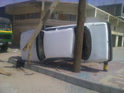 نجا وافد عربي من الموت بأعجوبة صباح أمس الثلاثاء عندما اصطدمت سيارته بعامودين للكهرباء بحي الخالدية. وكان الوافد يقوم بتوصيل طلبات مطعم لأحد المنازل عندما انفلتت إحدى الإطارات مما أدى لانحراف السيارة عن الطريق واصطدامها بعامودي كهرباء وتكسر أحدهما وتمكن السائق الخروج من سيارته دون إصابات، وقامت فرقة الطوارئ بكهرباء الشرقية بتغيير العمود، باشر الحادث من مرور حفر الباطن وكيل رقيب فلاح خلف المطيري.