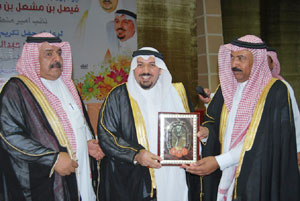 بحضور صاحب السمو الملكي الامير الدكتور فيصل بن مشعل بن سعود بن عبدالعزيز نائب أمير منطقة القصيم كرم مكتب رعاية الشباب بمنطقة القصيم اللواء متقاعد عبدالقادر بن عبدالباقي طلحة مدير شرطة منطقة القصيم سابقاً؛ حيث سلم درع التكريم الاستاذ عبدالعزيز السناني مدير مكتب رعاية الشاب بمنطقة القصيم.