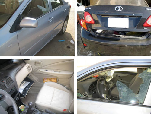 وعندما لاحظا وجود الفرقة ارتكبا الفرار جريًا على الأقدام، تاركين سيارتهما في الموقع، فتمت متابعتهما وضبطهما، وعند الرجوع للسيارة التي كان الشخصان يقفان بجانبها وجد زجاج السيارة مكسورًا والشنطة الخلفية مفتوحة، وبتفتيش سيارتهما عُثر بداخلها على حقيبة إسعافات أولية تابعة للسيارة اليارس واتضح أن الفرقة لم تملهم لأخذ بقية المسروقات من داخل السيارة.