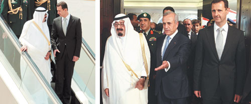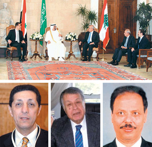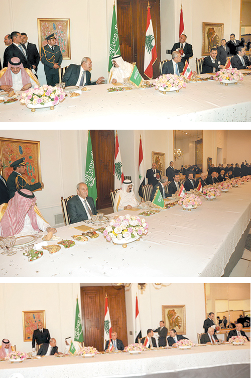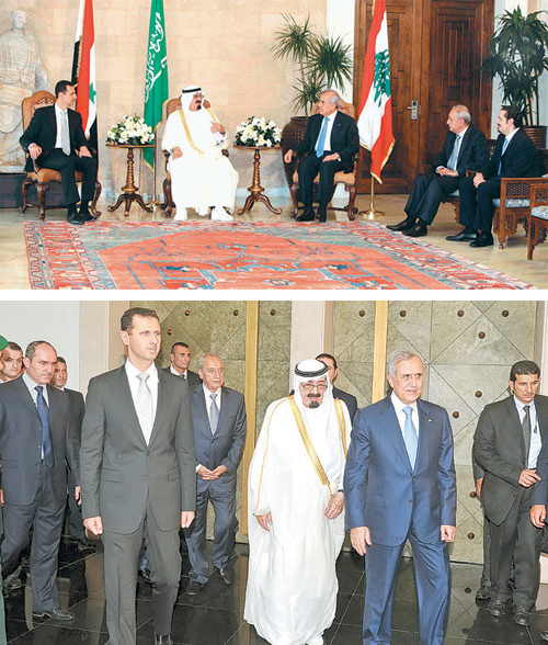 عقد خادم الحرمين الشريفين الملك عبد الله بن عبد العزيز والرئيس اللبناني العماد ميشال سليمان والرئيس السوري الدكتور بشار الأسد اجتماع قمة ثلاثية بعد ظهر أمس في قصر بعبدا في بيروت. وحضر الاجتماع دولة رئيس مجلس النواب اللبناني نبيه بري ودولة رئيس مجلس الوزراء اللبناني سعد الحريري.