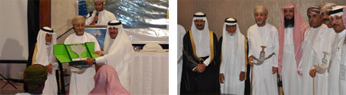 اختتمت الخميس الماضي أعمال فعاليات الملتقى الخليجي الأول لرعاية الموهوبين بمدينة صلالة بسلطنة عمان بمشاركة من دول الخليج، بعد أن استمرت فعالياته لمدة أسبوع بحضور أمين عام مجلس الشورى بسلطنة عمان عبد القادر بن سالم الذهب والذي قام بتوزيع الدروع على الرعاة حيث تسلم الدكتور أحمد الزهراني نيابة عن الأستاذ عبد الله منصور القحطاني درع الراعي البلاتيني للملتقى لمجموعة خبراء التربية، بينما تسلم الدكتور محمود نقادي درع الراعي الذهبي باسم مؤسسة الملك عبد العزيز ورجاله للموهبة والإبداع.