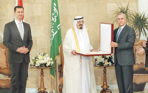 قبل أن يصل إلى عمّان العاصمة الأردنية «المحطة الرابعة لجولته العربية» حقق خادم الحرمين الشريفين الملك عبدالله بن عبدالعزيز إنجازاً تاريخياً عندما زار لبنان مصطحباً الرئيس السوري بشار الأسد إلى بيروت في الطائرة الملكية، مفتتحاً نهجاً يعيد بقوة الملف اللبناني إلى الحضن العربي لتثبيت الاستقرار وإلغاء احتمالات الفتنة. وقد عقد الملك عبدالله بن عبدالعزيز والرئيس اللبناني ميشال سليمان والرئيس السوري بشار الأسد اجتماع قمة ثلاثية بعد ظهر أمس في قصر بعبدا في بيروت.