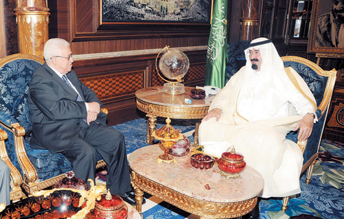 بحث خادم الحرمين الشريفين الملك عبدالله بن عبد العزيز مع الرئيس محمود عباس رئيس اللجنة التنفيذية لمنظمة التحرير الفلسطينية رئيس السلطة الوطنية الفلسطينية في جدة أمس تطورات القضية الفلسطينية ومعاناة الشعب الفلسطيني جراء الحصار المفروض عليه وتهديم ممتلكاته ومصادرة أراضيه والجهود الدولية المبذولة لإعادة عملية السلام إلى مسارها الصحيح للوصول إلى حل عادل وشامل يضمن للشعب الفلسطيني حقه في إقامة دولته المستقلة على ترابها الوطني وعاصمتها القدس وفقاً لقرارات الشرعية الدولية ومبادرة السلام العربية.