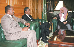 التقى معالي وزير الشؤون الإسلامية والأوقاف والدعوة والإرشاد صالح بن عبدالعزيز آل الشيخ، بمكتبه بالوزارة بالرياض أمس، سفير السودان لدى المملكة عبدالحافظ إبراهيم محمد. وجرى خلال المقابلة تبادل الأحاديث الودية والموضوعات ذات الاهتمام المشترك، خاصة ما يتعلق بالعمل الإسلامي وسبل دعمه وتطويره.