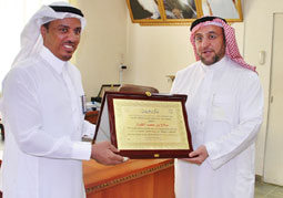من جهته ثمن الدكتور المنصور لمدير عام الشئون الصحية جهوده ودعمه اللا محدود ومتابعته المستمرة من أجل حصول المستشفى على شهادة الاعتماد، وتوفير كافة الإمكانات والأجواء الملائمة لرفع مستوى الإنتاجية على أكمل وجه وبجودة عالية، وفي نهاية اللقاء قدم الدكتور المنصور درعا تذكاريا للخراز بهذه المناسبة.