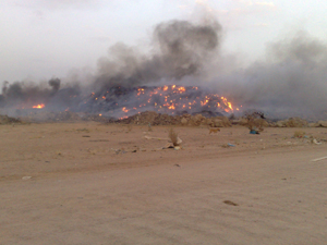 غطت سماء سوق الأغنام الجديد يوم أمس الأول سحب كثيفة من الأدخنة إثر حريق مدفن النفايات، وقد زارت ( الجزيرة) عددا كبيرا من مربي الماشية الذين تحدثوا عن تخوفهم من الأضرار الصحية الناتجة عن الأدخنة على حيواناتهم وعليهم هم أنفسهم.