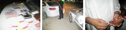 لم يكن يتوقع أحد الآسيويين أن مواطنه قائد سيارة الأجرة كان يعد له شركاً للإيقاع به بمساعدة ثلاثة من بني جلدته، فقد أقله معه من حي العزيزية إلى البطحاء مقابل مبلغ زهيد، فما كان من السائق إلا أن وضعه في منتصف المقعد الخلفي بينما على يمينه وشماله وافدان آخران والثالث في المقعد الأمامي، وما أن انتصفوا في الطريق حتى قام الثلاثة بتمزيق ملابسة وسلبه.. لكن عناية الله حالت دون أن يتموا جريمتهم ويفروا بفعلتهم.. حيث صادف ذلك مرور إحدى الفرق الميدانية التابعة لدوريات الأمن بمنطقة الرياض بالقرب منهم، حيث شاهدت سيارة الأجرة وبها شخصان في المرتبة الخلفية يقومان بضرب شخص كان يجلس بينهما بمساعدة السائق والمرافق، فطالبتهم بالوقوف، لكن السائق لم يذعن لمطالبات الفرقة، واستمر في الهرب حتى تم إيقافه بالقوة على جانب الطريق، بعدها فرّ الجميع من السيارة تاركين الضحية وقد مُزقت الملابس بالكامل، وسلب كل ما معه من نقود والبالغة 2500 ريال، إضافة إلى هاتفه الجوال. على الفور تم متابعة الجناة للقبض عليهم، حيث ضبط مع السائق ثلاثة هواتف جوالة، ومبلغ مالي يقارب 2000 ريال كما ضبط بحوزته أيضاً عدد من شرائح الاتصال الجديدة التي لم تستخدم، ووجد بداخل السيارة ثلاث محافظ نقود يحتمل أنها سلبت بالأسلوب نفسه.