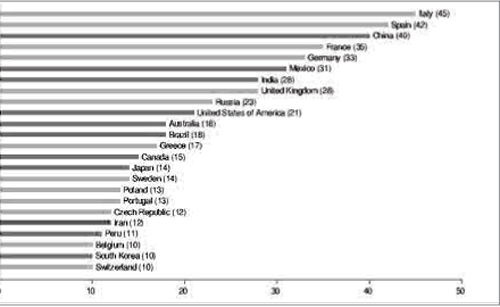 بلغ عدد المواقع المدرجة في هذه القائمة حتى عام 2010م، 911 موقعا، منها 704 مواقع ثقافية و180 موقعا طبيعيا و27 موقعا يدخل ضمن الصنفين، في 151 دولة من الدول الأعضاء. وترمز اليونسكو إلى كل موقع من هذه المواقع برقم خاص، ولكن مع تغيير نظام الترقييم فقد يتم إعادة إدراج بعض المواقع ضمن تصنيف أكبر. تحمل إيطاليا الرقم الأكبر في عدد المواقع التراثية وهو 45 موقعاً.