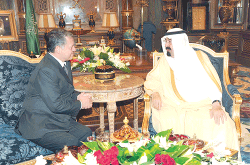 بحث خادم الحرمين الملك عبدالله بن عبدالعزيز وأخوه جلالة الملك عبدالله الثاني ابن الحسين ملك الأردن، في جدة، مساء أمس، مجمل الأحداث والتطورات على السـاحات الإســلامية والعربية والدولية، وفي مقدمتها تطورات القضية الفلســـطينية وضرورة تحقيق سلام عادل وشامل في المنطقة يضمن للشعب