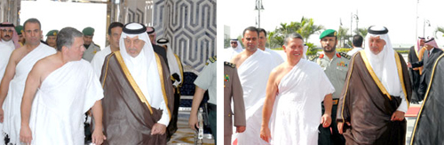 وكان في استقبال جلالته عند وصوله إلى المسجد الحرام وكيل الرئيس العام لشؤون المسجد الحرام والمسجد النبوي المساعد للشؤون الإدارية محمد بن حمد العساف وقائد قوة أمن الحرم العقيد يحيى الزهراني وعدد من المسؤولين.