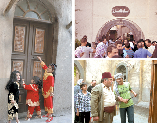 وإلى جانب المتحف يقع باب الحارة (وحارة الضبع) والتي يصور بها أغلب المقاطع الدرامية للمسلسل الشهير (باب الحارة) حيث يعتبر وحسب المسؤولين في القرية صاحب الشعبية الأولى في إقبال الزوار على زيارته والتنقل بين أزقته. ويحرص الزائرون على التقاط الصور التذكارية في مضافاته كمضافة (الاحد عشري) إلى جانب ذلك يوجد سوق (الحميدية) الذي يحاكي واقع السوق الشهير في قلب دمشق إضافة لأهم المعالم الدمشقية كالجامع الأموي وساحة العباسيين والحمامات الشهيرة، فيطلع الزائر من خلال القرية على أهم المعالم إلى جانب الاستمتاع بالحفلات الفنية في وقت واحد من خلال زيارة واحدة.