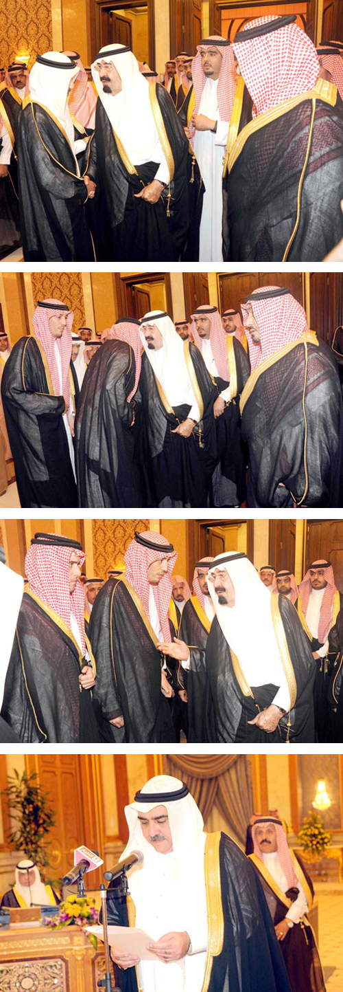 استقبل خادم الحرمين الشريفين الملك عبد الله بن عبد العزيز آل سعود - حفظه الله - في قصر السلام مساء أمس معالي وزير الاقتصاد والتخطيط الأستاذ خالد بن محمد القصيبي وسهيل وفارس ونجاد أبناء غازي بن عبد الرحمن القصيبي الذين أعربوا عن شكرهم وتقديرهم للملك المفدى على عزائه ومواساته لهم