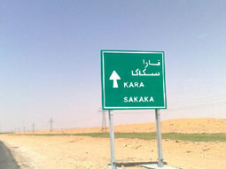أبدى مواطنون استغرابهم وامتعاضهم من منظر اللوحات الإرشادية التي وضعت مؤخراً على الطريق المؤدي لمطار الجوف بسكاكا، وفي الطرف الجنوبي لطريق الأمير عبدالإله بن عبدالعزيز (الأقليمي) حيث كتبت بشكل رديء, وطالبوا بتغييرها فوراً. وقال المواطن عبدالهادي بن متعب أن هذه اللوحات مسيئة في طريقة كتابتها وتعكس مدى العشوائية التي اتبعتها الجهة التي نفذت هذا العمل.