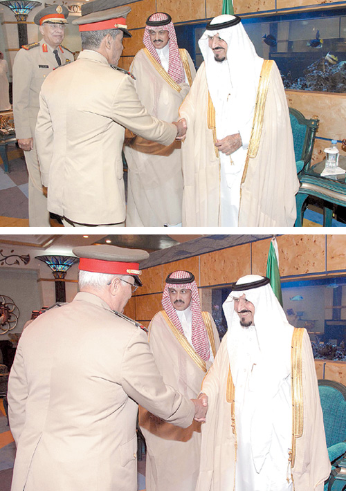 استقبل صاحب السمو الملكي الأمير سلطان بن عبدالعزيز آل سعود ولي العهد نائب رئيس مجلس الوزراء وزير الدفاع والطيران والمفتش العام في قصر سموه بجدة مساء أمس معالي رئيس هيئة الأركان العامة الفريق أول ركن صالح بن علي المحيا يرافقه معالي نائب رئيس هيئة الأركان العامة الفريق ركن حسين بن عبدالله القبيل وقائد قوات الدفاع الجوي الفريق عبدالعزيز بن محمد الحسين وقائد القوات الجوية الفريق ركن محمد بن عبدالله العايش وصاحب السمو الملكي اللواء ركن خالد بن بندر بن عبدالعزيز نائب قائد القوات البرية وقائد المنطقة الغربية اللواء ركن زعل بن سليمان البلوي وقائد الأسطول الغربي اللواء ركن عبدالله السلطان ومدير عام الشؤون العامة للقوات المسلحة اللواء إبراهيم المالك الذين قدموا للسلام على سموه وتهنئته بشهر رمضان المبارك.