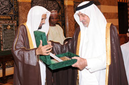 استقبل صاحب السمو الملكي الأمير خالد الفيصل أمير منطقة مكة المكرمة أمس الأول في قصره بمدينة جدة الدكتور عبد الله بصفر الأمين العام للهيئة العالمية لتحفيظ القرآن الكريم، بمرافقة الأوائل الفائزين بمسابقة الماهر بالقرآن في الحفل السنوي العاشر، الذي أقامته الهيئة، تحت رعاية الأمير خالد الفيصل والذي شرفه صاحب السمو الملكي الأمير مشعل بن ماجد بن عبد العزيز محافظ جدة، وقد تناولوا مع سموه والحاضرين مائدة إفطار رمضان، وقد سر الأمير خالد بزيارة الحفظة ولقائه معهم، وعبر عن شكره وتقديره للجهود التي تقوم بها رابطة العالم الإسلامي والهيئة العالمية لتحفيظ القرآن الكريم، في سبيل خدمة كتاب الله عز وجل ورعاية حفظته على مستوى العالم، وقال إن القرآن هو دستور المملكة وقد أولت المملكة عناية خاصة بالقرآن منذ المؤسس الأول الملك عبد العزيز يرحمه الله، وعلى أبناء الأمة الإسلامية أن يتمسكوا بالقرآن ويسيروا على هديه القويم، وأوصى سموه الحفظة على فهم القرآن الكريم الوسطي الصحيح البعيد عن التطرف.هذا وقد شكر الدكتور بصفر الأمير خالد على دعمه ورعايته لأنشطة الهيئة وأشاد بالدعم والرعاية الكريمة من حكومة المملكة، وقدم الأمين العام نسخة من كتاب جهود المملكة في الاعتناء بالقرآن الكريم للأمير خالد الفيصل، وفي ختام اللقاء التقطت الصور التذكارية.