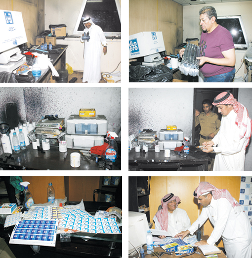 وأسفرت عن كشف (14) شقة بداخلها مصانع مزيفة للأحبار بالدور الثالث والرابع من سوق حراج الكمبيوتر بحي العليا وعثر داخل المصانع المزيفة على أحبار مقلدة تتراوح أسعارها من (70 إلى 80) ريالا فيما يتم بيعها على أنها أصلية ولشركات عالمية مشهورة بأسعار تتراوح مابين (250 إلى 750) ريالا. وعثر داخل المصانع المزيفة على أدوات تزوير متنوعة وشعارات وملصقات وأحبار.