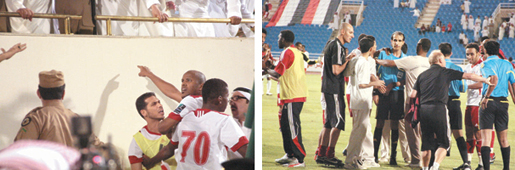 تجمهر عدد من لاعبي الفريق الكروي الأول بنادي الوحدة فور نهاية اللقاء الذي جمعهم مع نظيرهم فريق الرائد وانتهى بفوز الأخير بثلاثة أهداف لهدفين حول حكم اللقاء الدولي سعد الكثيري إلا أن التواجد الأمن حال دون تطور الأمور قبل أن يتدخل رئيس النادي عبدالمعطي كعكي الذي فض التجمهر وقاد لاعبيه إلى غرفة تبديل الملابس إلا أن لاعبا الفريق عبدالعزيز الخثران وماجد بلال اتجها إلى المقصورة الرئيسية لملعب مدينة الملك عبدالله بن عبدالعزيز الرياضية ببريدة وحاولا الاعتداء على من فيها وسط ظروف غامضة واستغراب ممن راقب الموقف ولكن لم يتحقق مبتغاهما نظير الحواجز الأمنية التي ساهمت في الحيلولة دون حدوث ما لا يحمد عقباه.