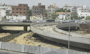 طالب المجلس البلدي بجدة بتسريع إنشاء الدوران الخلفي لتقاطع جسر الملك فهد مع فلسطين لفك الاختناقات الموجودة في المنطقة وإنهاء الصداع المزمن الذي سببه المشروع الذي بدأ العمل في تطويره منذ أكثر من خمس سنوات بتكلفة وصلت إلى (10,8) مليون ريال، وبات أكثر مشاريع الطرق والجسور والأنفاق تعثراً في مدينة جدة. جاء ذلك خلال الزيارة التي قام بها المهندس حسن الزهراني نائب رئيس المجلس البلدي والدكتور طارق فدعق رئيس لجنة التعمير برفقة المهندس سعيد بافهيد مدير عام الجسور والأنفاق في أمانة جدة وبعض منسوبي جمعية أصدقاء جدة، حيث وقف الجميع ميدانياً على المتبقي من المشروع والمتمثل في الدوران الشرقي الجنوبي، كما شاهدوا المشروع من أعلى البنايات الموجودة في الموقع للتعرف على حالة الاختناقات المرورية التي يسببها يومياً.