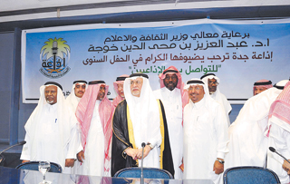 حضر معالي وزير الثقافة والإعلام الدكتور عبد العزيز بن محيي الدين خوجة أمس الأول حفل التواصل السنوي الذي أقامته إذاعة جدة لرواد العمل الإذاعي من المتقاعدين والجيل الحالي وذلك بمقر الغرفة التجارية الصناعية بجدة.