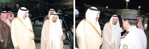 وقد غادر في معية سموه صاحب السمو الملكي الأمير طلال بن بدر بن عبدالعزيز، وصاحب السمو الملكي الأمير عبدالله بن خالد بن بندر بن محمد بن عبد العزيز.