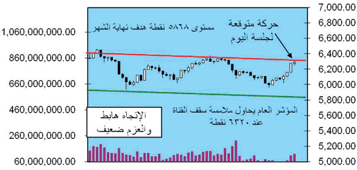 الدولار مرشح للهبوط أكثر والأصول ذات العائد المرتفع مثل الأسهم يبدو أن لها نصيبا من السيولة هذا الإسبوع؛ لذا ممكن أن تكون الأيام القليلة المتبقية لما قبل الإجازة خضراء لكن المخاوف من إغلاق السوق واستمرار بقية الأسواق ولا يعلم المستثمرون: هل هناك أخبار سلبية خلال العطلة أو إيجابية؟ لذا ممكن أن نرى نموا في أحجام التداول وتنشيط لمحافظ كبيرة خلال جلسة الأحد والاثنين لترتيب السيولة، وبعد دمج حركة التداول لآخر 58 جلسة يرجح أن يغلق السوق عند 6295 نقطة.