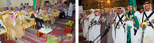 بعد ذلك استمتع الحضور مجدداً بالعرضة السعودية ثم تناول الجميع طعام العشاء، وبعد ذلك شرف رئيس مركز حوطة سدير والحضور الأمسية الشعرية التي كان فرسانها اثنين من نجوم شاعر المليون عيضة السفياني وفلاح المورقي وأدارها بنجاح الوجه الإعلامي القادم الشاب سيف السويلم.