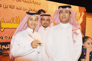 وفي ختام المهرجان جرى السحب على الجائزة الكبرى وهي عبارة عن سيارة فاز بها المشارك الشاب عبدالله أحمد زائف حيث قام آل سعد بتسليم الفائز مفاتيح السيارة.