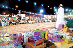 وقد بدئ الحفل في تمام الساعة التاسعة مساءً وتواصل حتى الساعة الثانية عشرة منتصف الليل، واشتمل على فقرات وبرامج منوعة أعجبت الحضور، وقد أبدى الكثيرون من أهالي المحافظة سرورهم بالاحتفال وما أتاحه من جو أخوي متميز بين الأهالي والجاليات، حيث بدت رابطة الأخوة الإسلامية ظاهرة في هذه المناسبة السعيدة على قلب كل مسلم. وفي نهاية البرنامج أقام المكتب وجبة عشاء معايدة للجاليات.