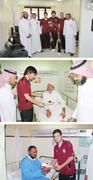 قام وفد من النادي الفيصلي بحرمة يتقدمهم عضو مجلس الإدارة والمشرف العام على الأنشطة المختلفة بالنادي الأستاذ مدلج بن إبراهيم اللعبون يرافقه مديركرة القدم بالنادي الأستاذ مدلج المدلج ومدير المركز الإعلامي الأستاذ عبدالمحسن المعمر ومترجم الفريق السيد بلال فارس ولاعبو الفريق الأول لكرة القدم» وصل الذويبي و الكرواتي داريو والسوري وائل عيان» بزيارة للمرضى المنومين في مستشفى الملك خالد بمدينة المجمعة وذلك لتقديم التهاني لهم بعيد الفطر المبارك وكان في استقبالهم مدير المستشفى المناوب وبعض منسوبيه وقد قدم اللاعبون باقات من الورود للمرضى الذين قدموا شكرهم وتقديره للفيصلي على هذه البادرة الإنسانية التي تأتي ضمن الأنشطة الاجتماعية بالنادي.