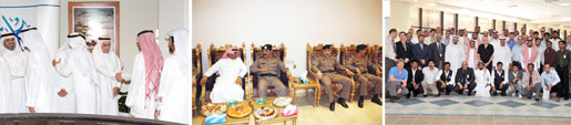 ومن جهة أخرى نظمت جامعة الملك فهد للبترول والمعادن صباح أمس حفل استقبال لمسئولي الجامعة الأكاديميين والإداريين ومنسوبيها بمناسبة العودة إلى العمل بعد انقضاء إجازة عيد الفطر السعيد وذلك في قاعة كبار الضيوف بمبنى إدارة الجامعة (مبنى رقم 21). كما أقامت شرطة المنطقة الشرقية حفل معايدة لمنسوبيها وذلك بقاعة الضيافة الرئيسية بمديرية شرطة المنطقة الشرقية رعى الحفل سعادة نائب مدير شرطة المنطقة الشرقية اللواء غرم الزهراني وقد تفضل سعادته بعد السلام على العموم بإلقاء كلمة رحب فيها بالحضور والمهنئين بالعيد. ومن جانب آخر أقامت الهيئة الملكية بالجبيل حفل معايدة لمنسوبيها لتبادل التهاني بمناسبة عيد الفطر المبارك جريا على العادة السنوية، حيث التقى سعادة الرئيس التنفيذي للهيئة الملكية بالجبيل الدكتور مصلح العتيبي ومدراء العموم ومديري الإدارات والموظفين وتبادلوا التهاني في جو سادته الألفة والمودة، وتناول الجميع الحلويات في حفل بهيج نظمته إدارة العلاقات العامة. وكانت إدارة العلاقات العامة بالهيئة الملكية بالجبيل قد قامت في أول أيام عيد الفطر المبارك بتهنئة الموظفين المناوبين في إجازة العيد حيث تمت زيارتهم ميدانيا وقدمت لهم الحلويات في أماكن عملهم. هذا وأقامت المديرية العامة بالدفاع المدني بالمنطقة الشرقية حفل معايدة لمنسوبيها لتبادل التهاني بمناسبة عيد الفطر المبارك جريا على العادة السنوية، حيث التقى مدير عام الدفاع المدني بالمنطقة الشرقية بالإنابة العميد سعيد المالحي في حفل المعايدة الضابط والأفراد والموظفين ومدراء الإدارت الداخلية وقادة الفروع بالمنطقة الشرقية.