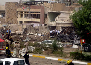 وأفاد مراسل لفرانس برس أن الانفجار في حي المنصور استهدف مقر شركة (آسيا سيل) للهاتف النقال في ساحة أبو جعفر المنصور واستهدف الانفجار عند ساحة عدن منزلا يتخذه الأمن الوطني مقرا ما أدى إلى وقوع أضرار مادية جسيمة في المكان واحتراق عدد كبير من السيارات، وفقا لمراسل فرانس برس. وفي الفلوجة (50 كلم غرب بغداد) قال مصدر أمني إن ستة أشخاص بينهم ثلاثة من الجنود العراقيين قتلوا وأصيب 14 آخرون بجروح بانفجار سيارة مفخخة يقودها انتحاري عصر أمس استهدف دورية للجيش.
