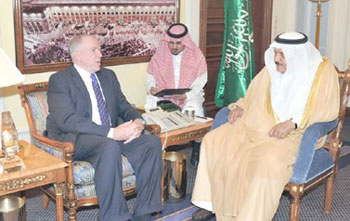 بحث صاحب السمو الملكي الأمير نايف بن عبدالعزيز النائب الثاني لرئيس مجلس الوزراء وزير الداخلية في جدة أمس، مع مساعد الرئيس الأمريكي للأمن القومي ومكافحة الإرهاب جون برينان الموضوعات ذات الاهتمام المشترك بين البلدين الصديقين. وأشاد سمو النائب الثاني ومساعد الرئيس الأمريكي للأمن