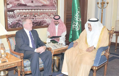 جدة - واس استقبل صاحب السمو الملكي الأمير نايف بن عبدالعزيز آل سعود النائب الثاني لرئيس مجلس الوزراء وزير الداخلية في مكتب سموه بوزارة الداخلية في جدة مساء أمس، مساعد الرئيس الأمريكي للأمن القومي ومكافحة الإرهاب جون برينان. وفي بداية اللقاء رحب سموه بالمسؤول الأمريكي والوفد المرافق له، وجرى تبادل الأحاديث الودية ومناقشة الموضوعات ذات الاهتمام المشترك بين البلدين الصديقين. ...>>>...