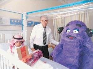 شاركت شركة الرياض العالمية للأغذية الوكيل الحصري لمطاعم ماكدونالدز السعودية في الوسطى والشرقية والشمالية الأطفال فرحتهم بعيد الفطر المبارك ولا سيما المرضى منهم من خلال زيارة فرق من ماكدونالدز إلى المرضى والأطفال في المستشفيات وتقديم الهدايا لهم ومعايدتهم، وهي عادة دأبت على تنفيذها الشركة منذ زمن بعيد في أيام العيد لرسم الابتسامة على وجوه المرضى. حيث زار فريق ماكدونالدز مستشفى الملك فهد الجامعي بالمنطقة الشرقية وقام بتقديم الهدايا على المرضى من الأطفال إلى جانب هدايا العيد، كما قام فريق آخر من ماكدونالدز بزيارة مدينة الملك فهد الطبية في مدينة الرياض وشارك الأطفال احتفالهم بعيد الفطر المبارك، وساهمت تلك الزيارات التي قامت بها فرق ماكدونالدز في رفع الروح المعنوية لدى الأطفال والمرضى إلى جانب نشر البهجة والسرور في نفوسهم. يذكر أن ماكدونالدز السعودية تشارك في العديد من الأنشطة الاجتماعية إيمانا منها بأهمية مشاركة القطاع الخاص في المسؤولية الاجتماعية لما يعود بالنفع على كافة أفراد المجتمع.