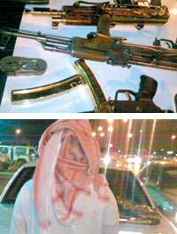 وبعد تمرير معلومات السيارة على الفور إلى غرفة العمليات اتضح أن معلومات السيارة صحيحة ومطابقة، ولم يتضح وجود سبب أو مبرر مقنع لفرار الشخص؛ فتم توجيه عدد من الفرق لمساندة الدورية، وبالفعل تم تضييق الخناق على المشتبه به وإيقافه بالقوة، وبعد تفتيش الشخص والسيارة عُثر بحوزته على ثلاثة أسلحة رشاشة جميعها غير مرخصة، كما عُثر بحوزة الشخص على عدد 180 طلقة من الذخيرة الحية، وعدد خمسة مخازن أسلحة رشاشة؛ فتم التحفظ على الشخص والسيارة والأسلحة المضبوطة، وسلموا إلى مركز شرطة الروضة؛ لاستكمال إجراءات التحقيق.