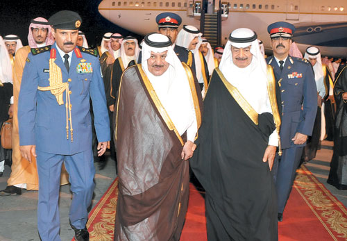 وكان قد وصل صاحب السمو الملكي الأمير نايف بن عبدالعزيز آل سعود النائب الثاني لرئيس مجلس الوزراء وزير الداخلية إلى مملكة البحرين مساء أمس ليرأس وفد المملكة المشارك في الاجتماع السابع لوزراء داخلية دول جوار العراق الذي يبدأ أعماله اليوم.