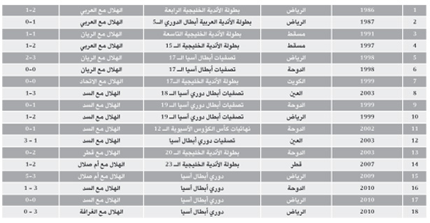 وقد جاءت لقاءات الهلال مع الأندية القطرية كالآتي: