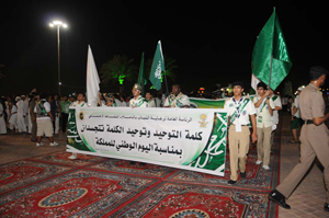 تحت رعاية صاحب السمو الملكي الأمير محمد بن فهد أمير المنطقة الشرقية، جسدت مساء أمس الأول الخميس احتفالات اليوم الوطني في كافة مدن ومحافظات المنطقة الشرقية، وسط مسيرات رسمية وفعاليات متنوعة شارك فيها المواطنون والمقيمون، تجلت بترديد الأهازيج والأناشيد الوطنية ورفع الأعلام، وفي الاحتفال الذي نظمته أمانة المنطقة في منتزه الأمير فيصل بن فهد بالواجهة البحرية في كورنيش الخبر، هنأ أمين المنطقة المهندس ضيف الله العتيبي في كلمة ألقاها باسم أهالي المنطقة، مقام خادم الحرمين الشريفين الملك عبد الله بن عبد العزيز وولي عهده الأمين وسمو النائب الثاني وصاحب السمو الملكي الأمير محمد بن فهد أمير المنطقة وسمو نائبه والأسرة الحاكمة والشعب السعودي الكريم باليوم الوطني الثمانين.